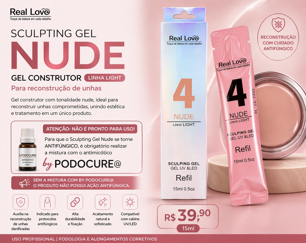 Sculpting Gel Nude â Reconstrução AntifĂșngica | 15ml